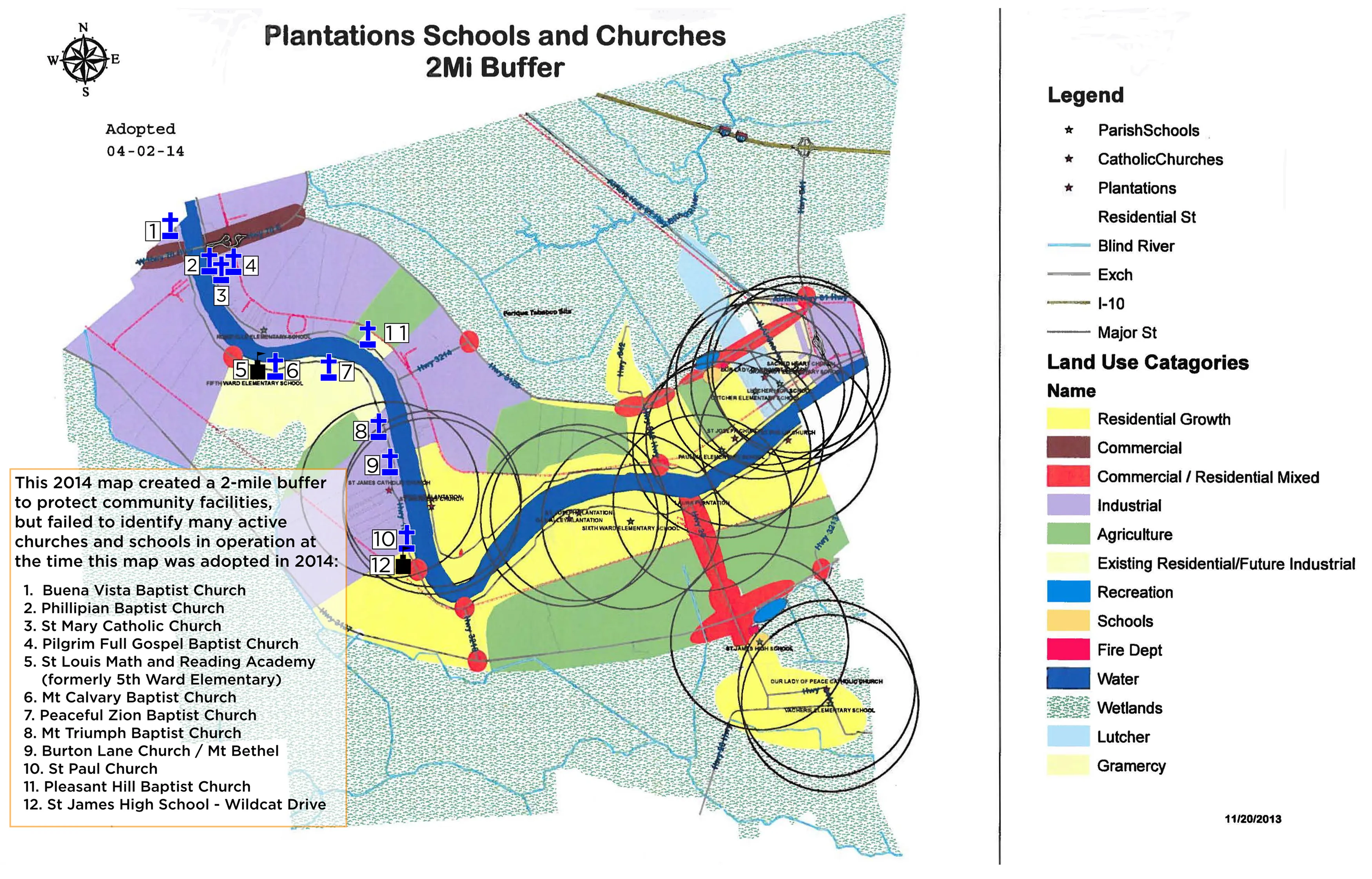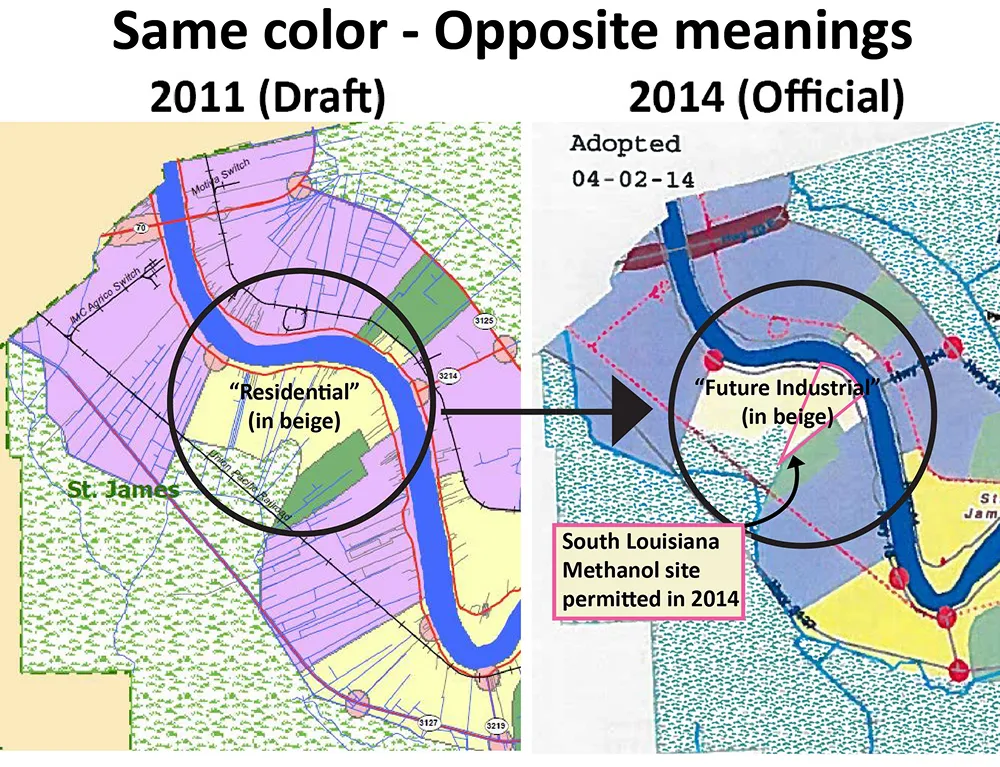 By 2018, residents and advocates were overwhelmed by the sheer number and scale of industrial proposals in St James. Formosa Plastics, South Louisiana Methanol, Petroplex, Koch Methanol, Wanhua, SynGas… it was an avalanche. The decision was made by a group of advocates to dig deeper into the public planning documents that set up the framework for such a torrent of activity and land speculation. The report research required detailed investigation into public records, meeting minutes, draft master plan documents, property records, resident interviews, data and statistics, in addition to field work to document the landscape before it was about to be permanently disfigured. As problems multiplied, and the consequences of the flawed plan became more and more apparent, the goal became to publish the report and draw significant media attention to the parish, in order to call for a halt to the assault on majority black areas of the parish.